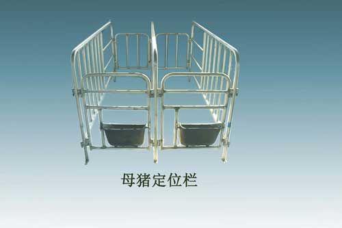 限位栏一般应用于空怀母猪、妊娠母猪、后备母猪,其有利于母猪保胎,便于实现定量饲喂,有效避免妊娠母猪群饲喂时争食咬斗,限位栏的饲喂饮水和粪便处理都很集中,占地面积小,污水产生量减少,便于实现机械化管理。采用单体限位栏饲养可使怀孕期母猪增重均匀,尤其是第一胎母猪增重更整齐。单体饲养可使单位增重的饲料更节省,采食量均匀,没有相互间碰撞。适当的饲养空间,每栏宽度60-65cm、长度210-220cm,使母猪无回旋空间。 设备配置: 1、主体架栏由厚壁热镀锌钢管焊接而成 2、便于清粪和人工授精操作的后门 3、铸铁母猪食槽